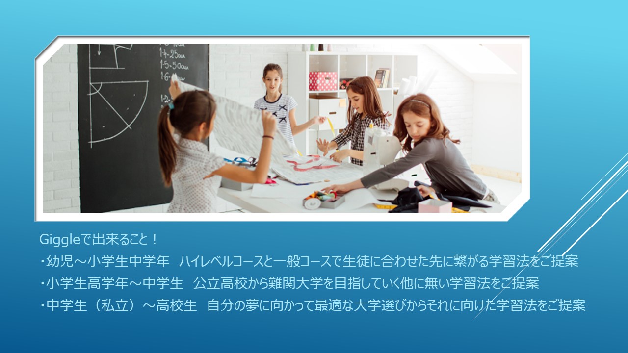 GiggleAssistは生きた英語を軸に5教科に対応した進学塾です