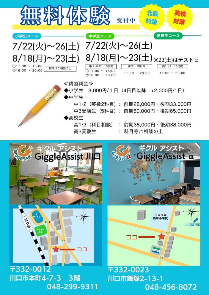 GiggleAssist(ギグルアシスト)では、夏期講習生を募集しております。